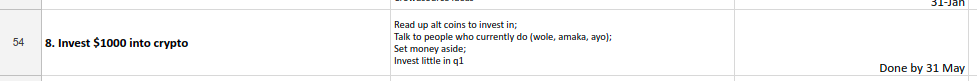 I created a spreadsheet to help me set and document my goals. Resource 1, Resource 2