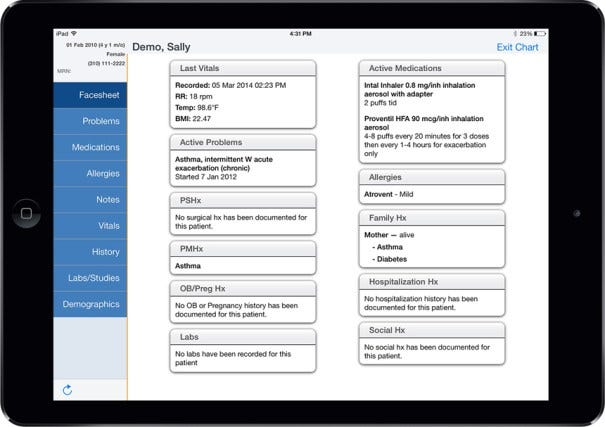 So you see that a well-implemented EMR system can gather all the necessary info that used to be carried in a paper chart but has a number of other benefits: